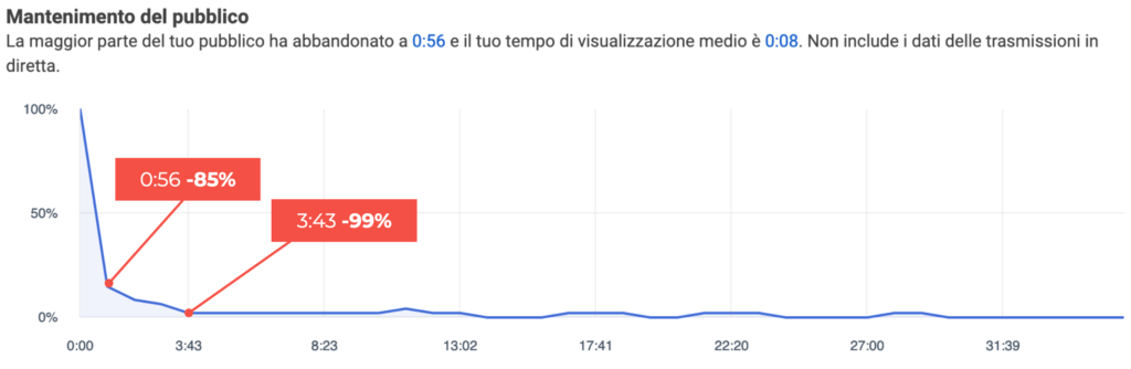 Da 3:43 non ha resistito nemmeno l’1%. Ciò accade molto più spesso di quello che crediamo perché, nel momento in cui abbiamo progettato il contenuto, innamorati della nostra idea, non abbiamo considerato: